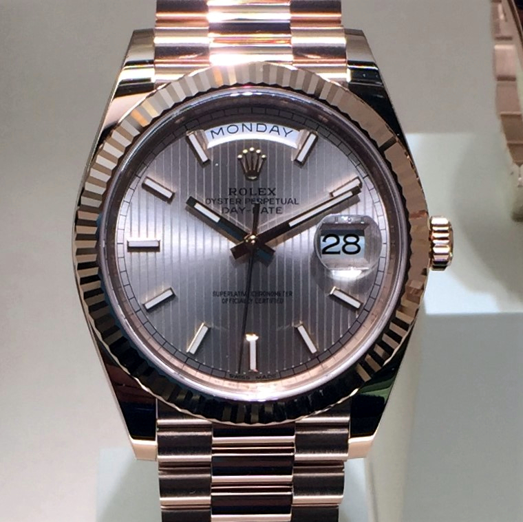Rolex Day-Date 228235 with day display at 12 o’clock in addition to the date and Cyclops lens