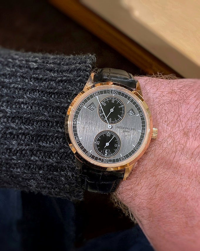 The regulator is also a feature of one of the most esteemed brands in watchmaking – Patek Philippe. The regulator dial layout was introduced for the first time ever to a Patek Philippe watch (at least as far as I can find) on the annual calendar reference 5235. The original 5235G in white gold with a light grey dial was introduced in 2012, before the updated 5235R in rose gold with a contrasting anthracite dial was introduced in 2019.